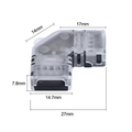 Working with RGB LED strips and looking for a neat and reliable corner connection without soldering? This 10mm Hippo-M Corner Connector with 4 pins is the perfect solution. Thanks to its convenient clip-on system, you can easily connect two 10mm-wide LED strips at a 90° angle.