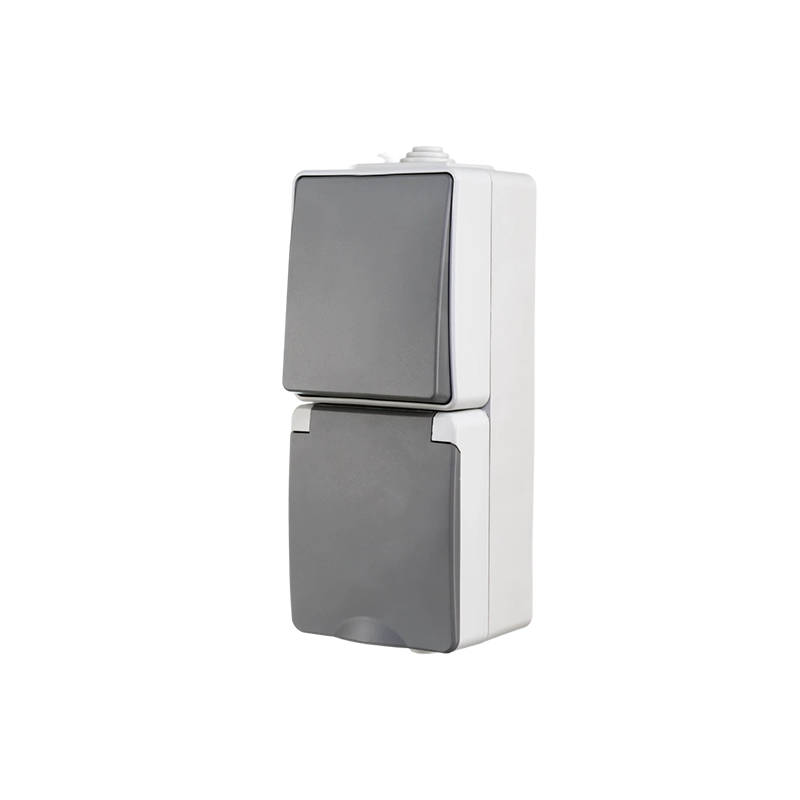Surface-mounted IP55 Combination Socket and Switch Vertical | Gray