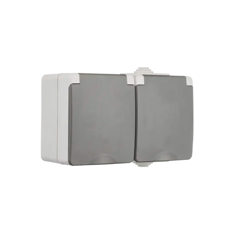 ION INDUSTRIES | SURFACE-MOUNTED WALL SOCKET 2X | HORIZONTAL | IP55 | GREY