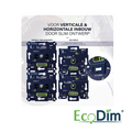 The ECO-DIM.16 offers easy installation thanks to its screw and claw mounting and can be mounted both horizontally and vertically. It is suitable for two-way and two-way switching, meaning you can use multiple switches to control the same light. Its compact mounting depth allows for installation in tight spaces.