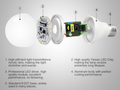This LED lamp consumes approximately the same amount of energy as a halogen lamp.