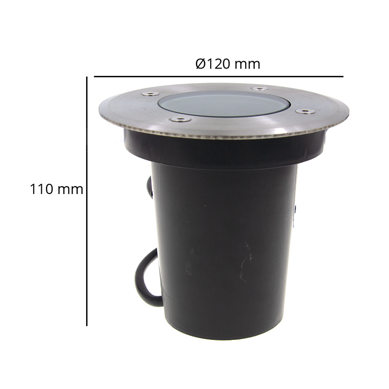 With the in-ground spotlight with a GU10 base (Ø120mm x H110mm), you can create the perfect lighting for your garden or outdoor space. This spotlight offers numerous possibilities for illuminating driveways, gardens, decking, or highlighting specific objects like trees or statues. Thanks to the GU10 base, you can easily choose the right LED spotlight yourself, allowing you to adjust the desired light color and wattage to your needs.