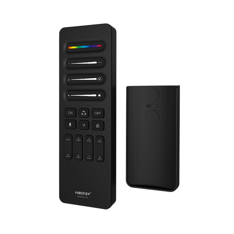 The remote control is suitable for a variety of applications, from atmospheric home lighting to functional lighting in restaurants, shops, or showrooms. The magnetic holder allows you to easily place the remote in a fixed location, always ready for use.