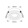 The Delos is a compact and elegantly designed recessed luminaire, ideal for both residential and commercial applications. With a Ø58 mm cutout and an outer diameter of Ø63 mm, this spotlight fits into small ceilings or recesses where larger fixtures are not possible. Its height of only 25 mm makes it particularly suitable for ceilings with limited recess depth.