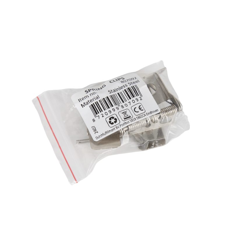 The spring clamps are made of stainless steel, which guarantees durability and high corrosion resistance. Their silver color creates a modern, neutral look that complements various ceiling types. Thanks to their sturdy material, the clamps provide reliable and long-lasting support.