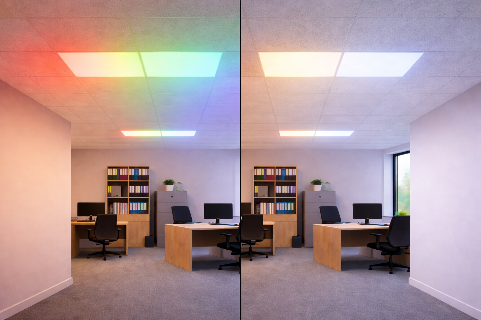 Dit paneel beschikt over RGB-kleuren én instelbaar witlicht, waardoor u zowel functionele als sfeerverlichting creëert: