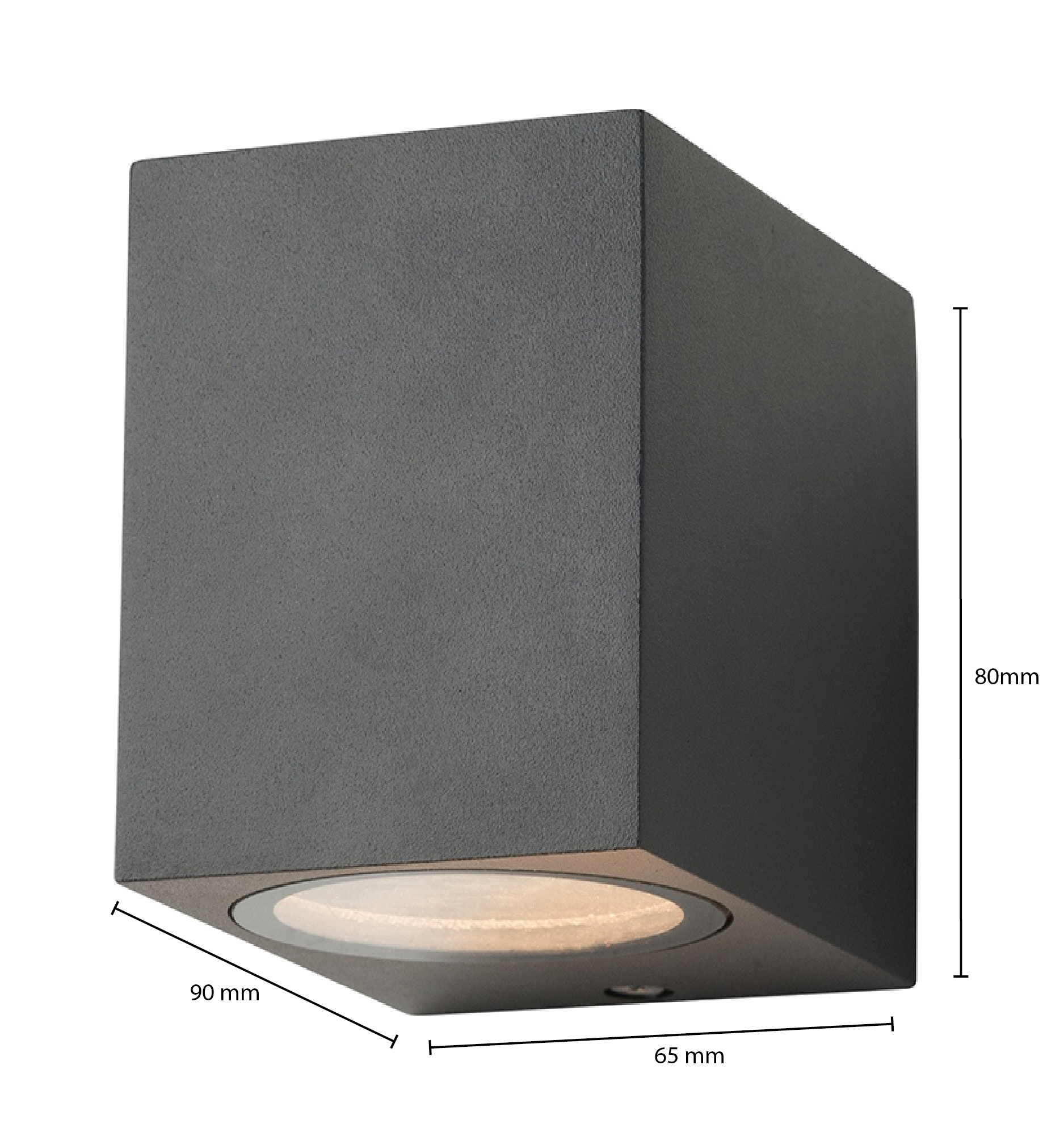 Met een matgrijze afwerking heeft deze wandarmatuur een strakke, moderne look. Het is gemaakt van hoogwaardig aluminium, wat niet alleen bijdraagt aan het fraaie uiterlijk, maar ook aan de lange levensduur van het product. Dankzij de afmetingen van 90x65x80 mm is dit armatuur perfect voor diverse ruimtes, zowel klein als groot.