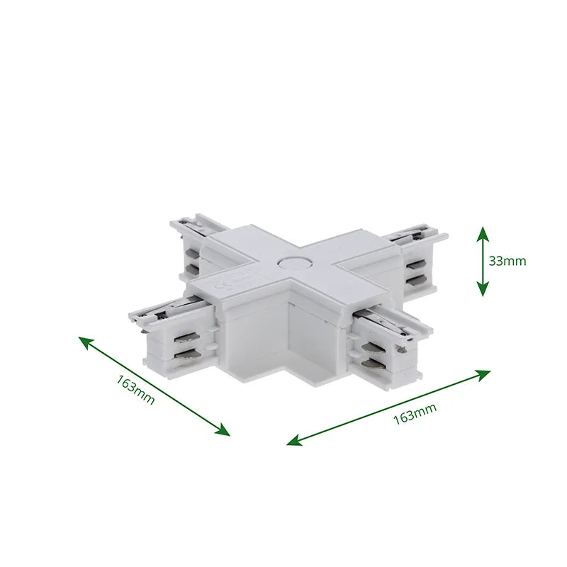Een X-vormige connector is ontworpen om vier railsegmenten met elkaar te verbinden in een kruisvorm. Dit maakt het mogelijk om grotere ruimtes overzichtelijk en efficiënt te verlichten, met behoud van een nette, symmetrische installatie. Dankzij de ondersteuning voor 3-fase railverlichting biedt deze connector maximale controle over uw lichtpunten.