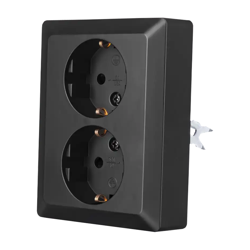 De wandcontactdoos heeft een stijlvolle mat zwarte afwerking (RAL 9017) waardoor hij mooi aansluit bij elk interieur. Dankzij de IP-waarde van IP20 is de contactdoos geschikt voor gebruik in droge ruimtes wat bijdraagt aan de veiligheid en functionaliteit.