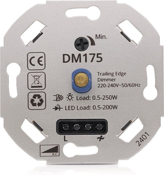 Het betreft een fase-afsnijding (trailing edge) dimmer. Dankzij de hoogwaardige elektronische aansturing is een ontstoringsspoel overbodig en blijft de dimprestatie altijd stil en stabiel.