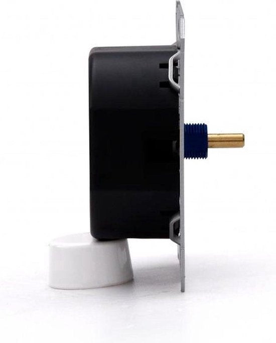 De dimmer is bovendien universeel compatibel en past in vrijwel alle gangbare afdekramen, waaronder GIRA, Berker, Peha, Jung en Busch-Jaeger. Voor Busch-Jaeger wordt een speciale adapter meegeleverd om de draaibus van 4 mm naar 6 mm te verdikken.