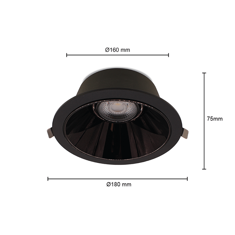 LED DOWNLIGHT | KERBER | CCT-SWITCH | Ø160MM | 16W | ZWART