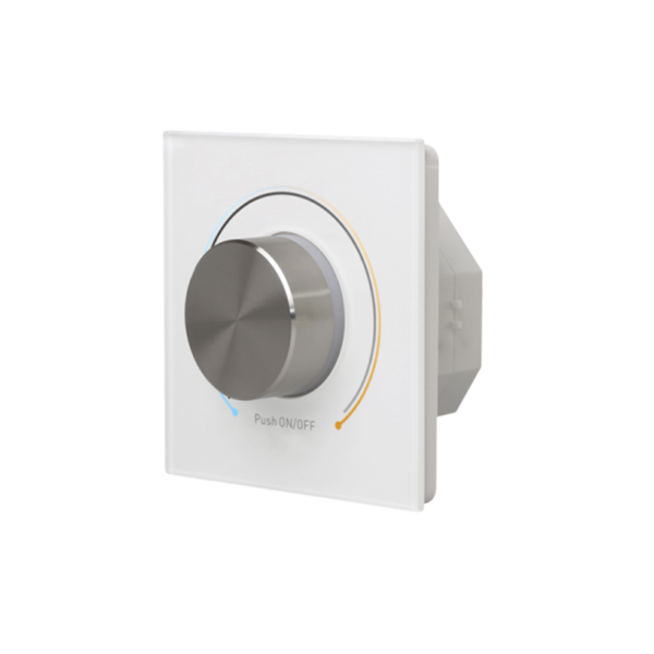 Deze DALI dimknop is een dual-color DT8 Rotary Master en maakt het mogelijk om zowel lichtintensiteit als kleurtemperatuur te regelen.