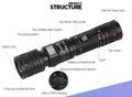 Deze led zaklamp is voorzien van 5 functies: High-Medium-Low-Strobe-SOS.